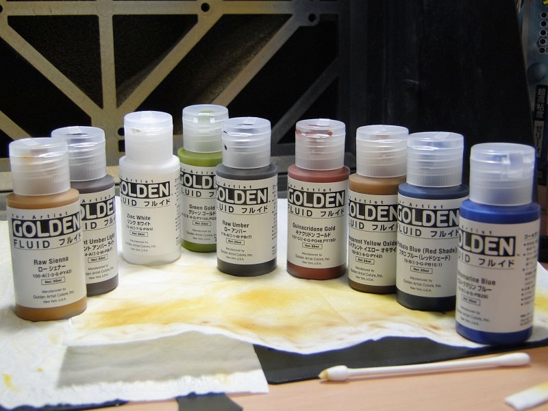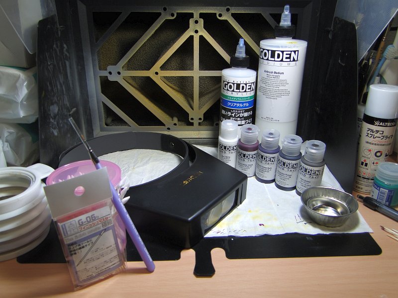 右半分は今回使用した塗料類。今までの塗装工程と一緒で全てアクリル