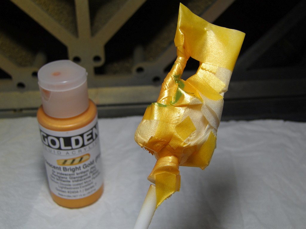 今までと同じ手順で金色を吹いて帯部分の塗装が終わったところ。