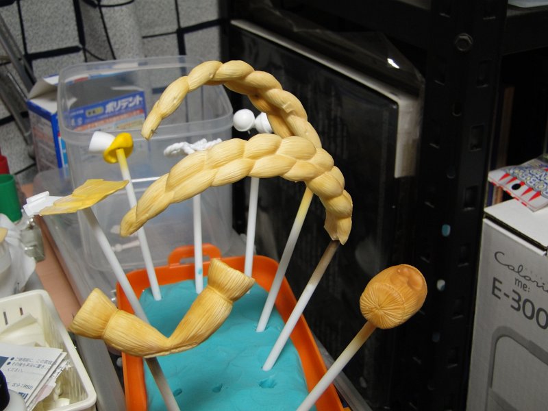 割と早く乾いたのでしめ縄パーツを組み立て、先に塗装していた金色パーツを