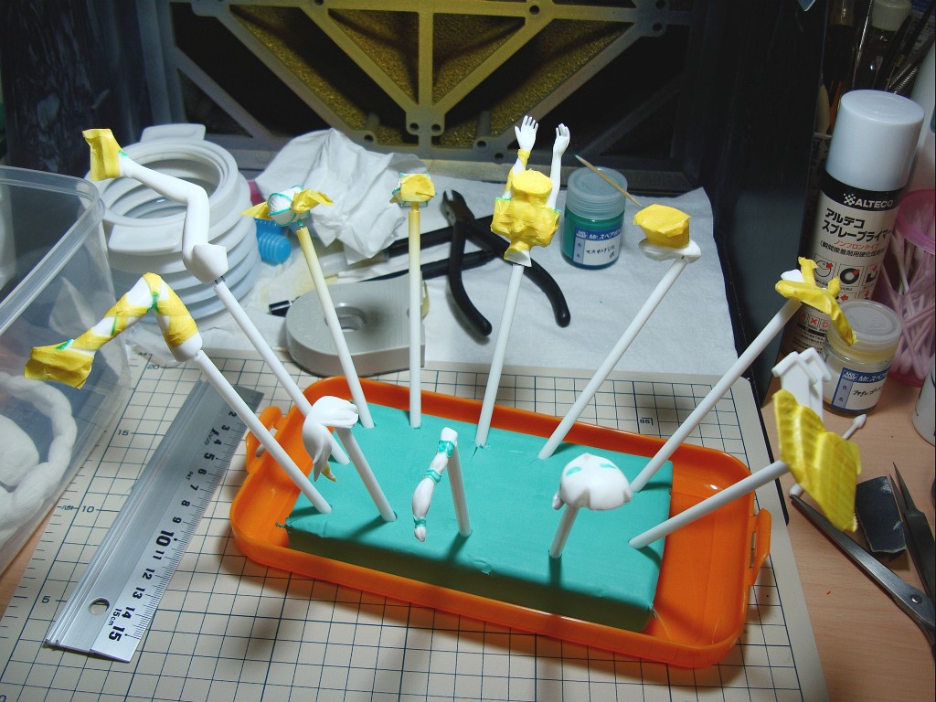 ひたすらマスキング。予想はしてましたが手足などに巻かれた帯の部分の