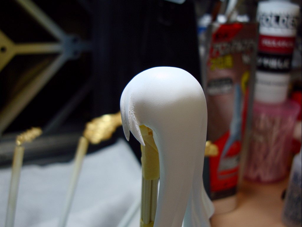 瞬間接着剤で継ぎ目消し。前髪パーツはそれ自体の接着面積も狭い