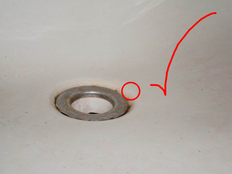 ワンバウンドし、排水口へ向って転がりつつも、排水口の金具のフチで引っ掛かり