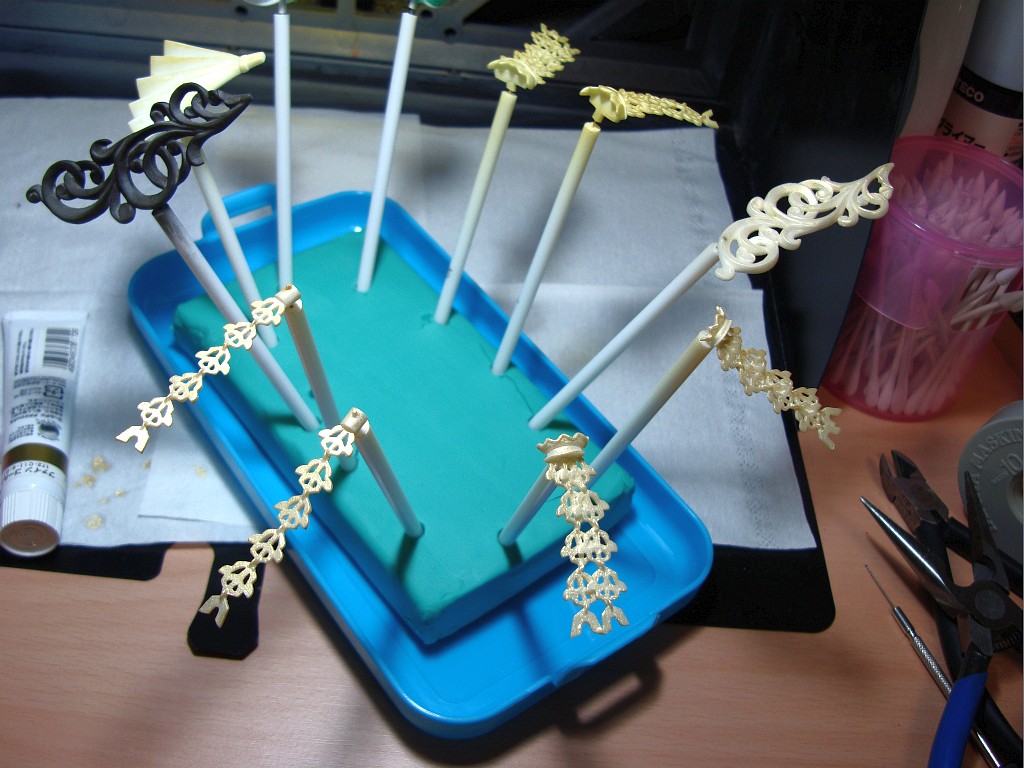 とりあえず一番処理がめんどくさそうな金色パーツから塗装を