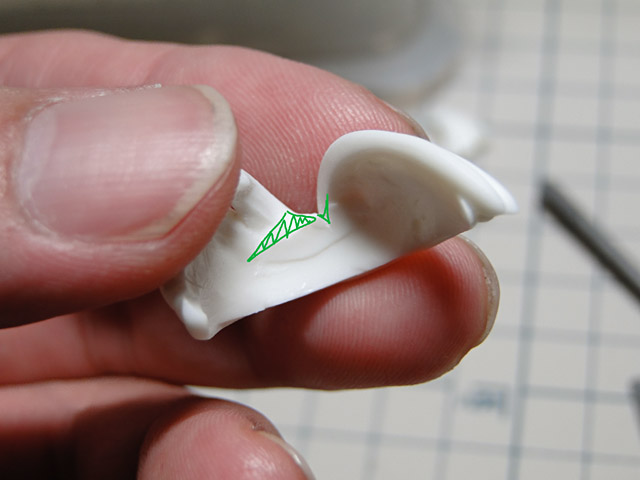 (左の斜線部分)が裏側部分にあったので、それぞれリューターやらナイフで削り取って