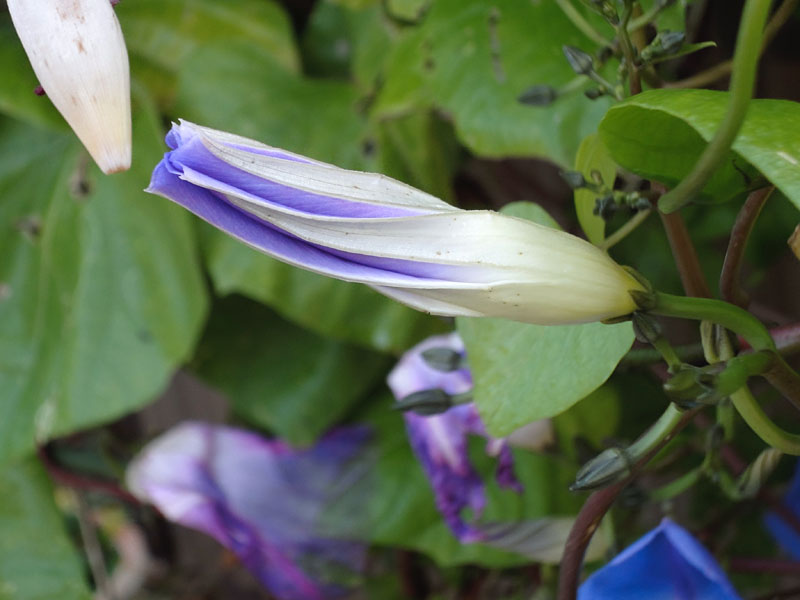 感じだと琉球朝顔という品種かな?。ウチ的に丁度いま手をつけてる藍ちゃんの蒼の